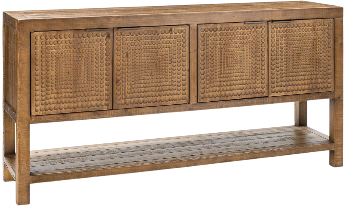 Blending rustic elegance with modern functionality, the Osiris Brown 4-Door Cabinet is crafted from reclaimed pine with intricate door detailing. Fusing removable shelves and wire management holes, this versatile piece is perfect for both display and organization.Read More