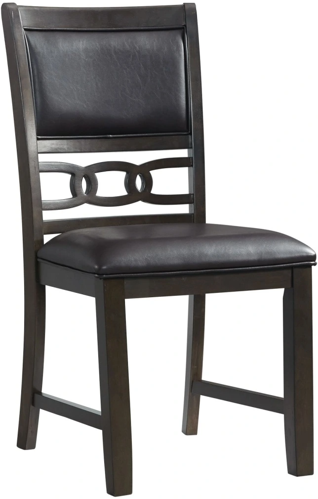 The Amherst Standard Height Side Chair Set will look fantastic in your living room! This set includes two side chairs that will look great around your dining table. This dynamic duo features a faux leather, upholstered seat and back that will give you ultimate comfort while you enjoy your meals. The back of the chair also features a cool, link design that instantly adds flair to this already stunning set. The dark, walnut finish pairs beautifully with the black fabric and a combination you'll enjoy year after year. Add this chair set to your home today for a look you'll enjoy day after day!