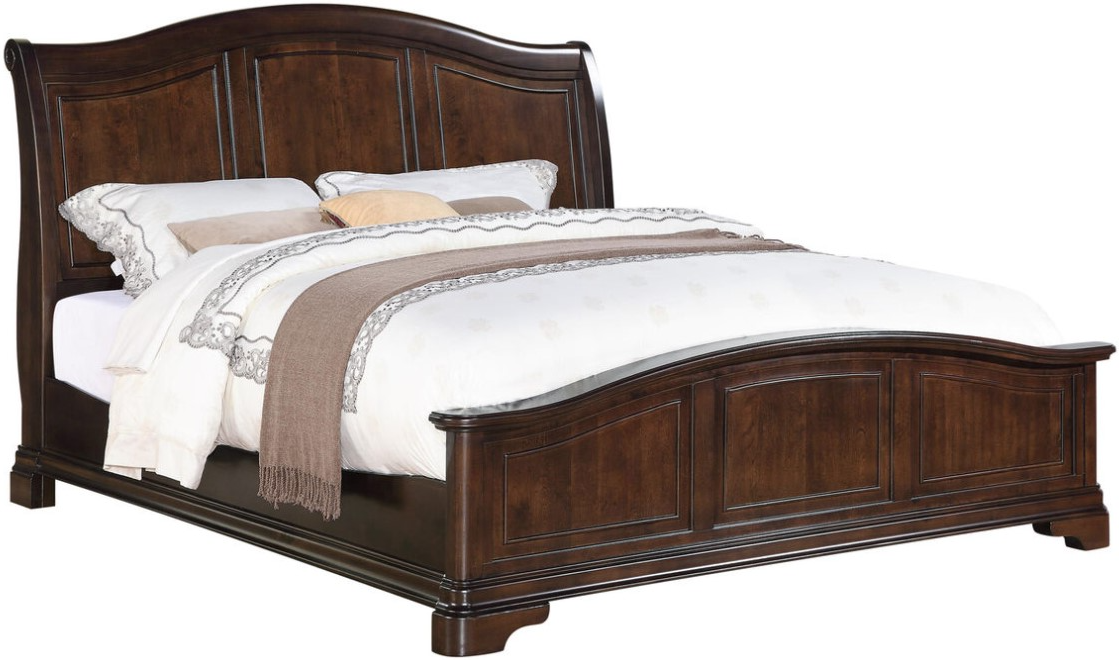Sophisticated style meets function with the refined Cameron ensemble. A lustrous panel headboard and your choice of a panel Sleigh or low footboard make this an easy fit for any style. Overhang case piece tops speaks to the craftsmanship of this collection while large sturdy pieces ensure this set's durability. Hidden push out drawers on all case pieces offer easy, yet discrete storage of your more personal belongings. A elegantly arched dresser mirror is the final touch in this dashing collection.