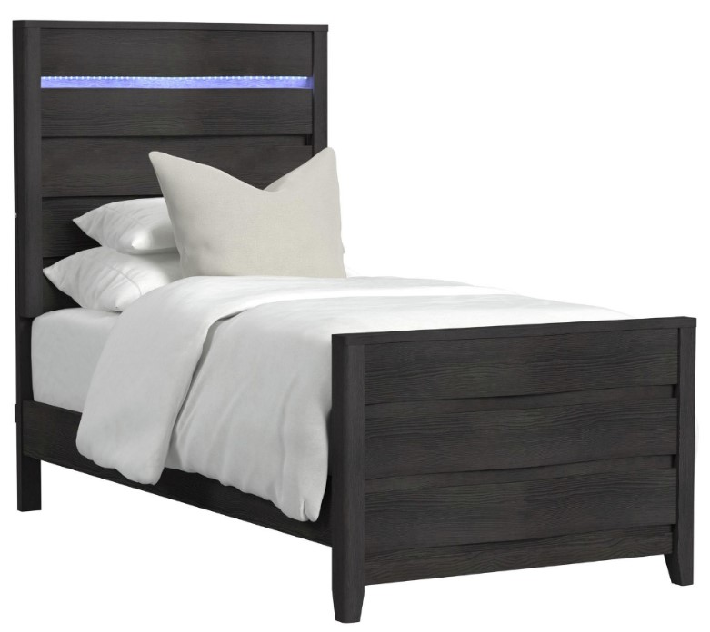 Conveniently integrated LED lighting in the headboard adds modern flair, while slightly beveled legs provide a firm and reliable foundation. For a piece that is sleek and stylish, the Tobias Twin Bed with LED in Black delivers in quality and design.