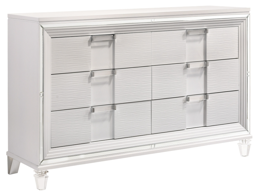 The sophisticated Twenty Nine bedroom collection features a white finish paired with acrylic hardware and feet. This dresser has solid plywood framing, and felt lined top drawers. The perfect addition to your bedroom.Read More