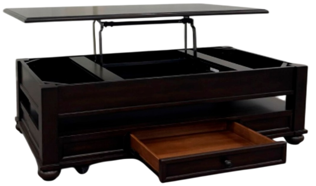 Accent your living space with the Wagner Rectangular Lift-Top Coffee Table’s elegant design. Made with quality solid wood and a warm, cherry veneer, this piece demonstrates the appeal of traditional style. Detailed elements like bun feet and decorative molding add touches of elegance.Read More
