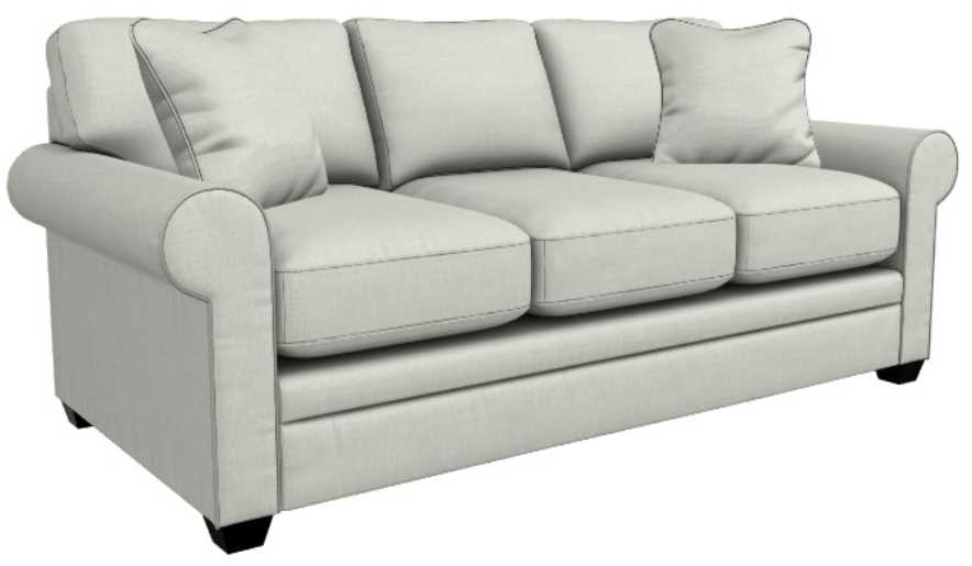 Rolled arms, decorative wood legs and welt trim lend laid-back sophisticated style